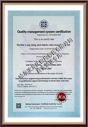 龍慶鋼構(gòu)彩板有限公司 目前擁有鋼結(jié)構(gòu)制造一級(jí)、鋼結(jié)構(gòu)承包一級(jí)、施工總承包二級(jí)、ISO9001質(zhì)量體系認(rèn)證、信用等級(jí)AAA級(jí)企業(yè)。公司總占地30萬平米,在職員工1000余人,同時(shí)擁有重鋼、輕鋼生產(chǎn)基地5個(gè),年產(chǎn)值20萬噸。主要涉及有:鋼結(jié)構(gòu)系列、彩鋼壓型板系列、彩鋼夾芯板系列、組合樓板系列等工程配套產(chǎn)品。廣泛應(yīng)用于:工業(yè)廠房、體育場(chǎng)館、高鐵站房、機(jī)場(chǎng)航站樓、超高層、畜牧行業(yè)、乳品行業(yè)、倉儲(chǔ)冷鏈物流、石油化工、醫(yī)藥、食品加工行業(yè)、橋梁、物流等等。
